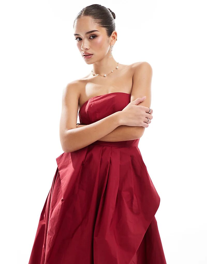 Платье макси True Decadence с асимметричным подолом бордового цвета