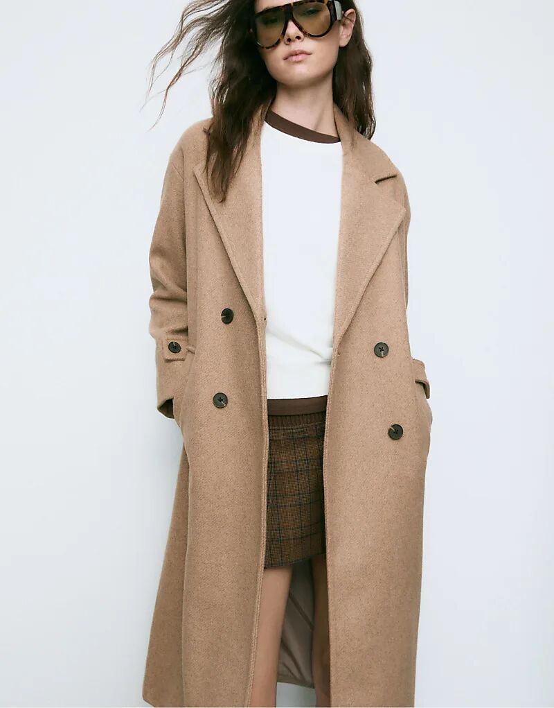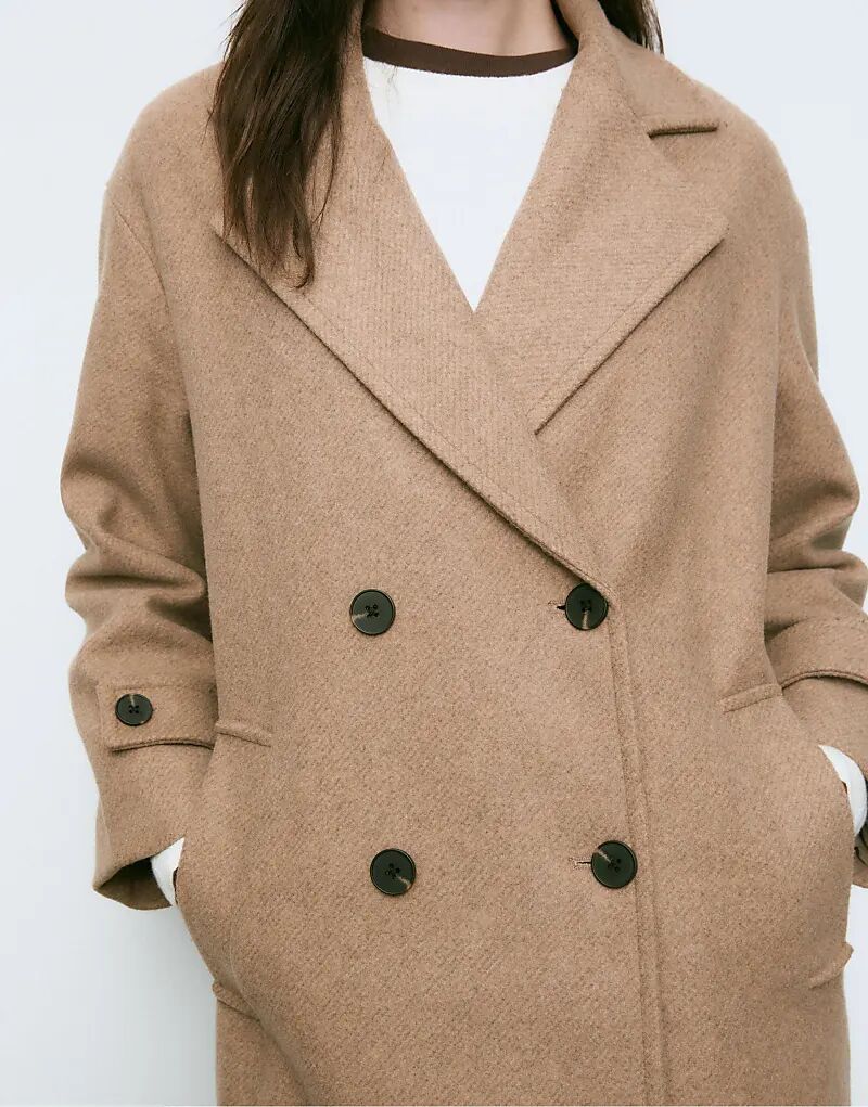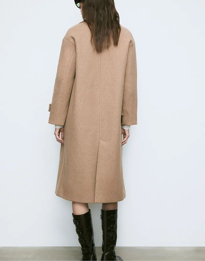 Длинное пальто Stradivarius oversize цвета верблюжьей шерсти