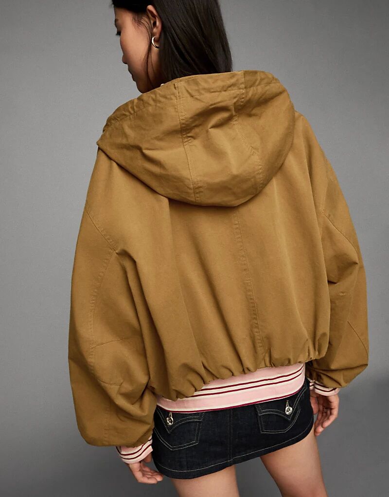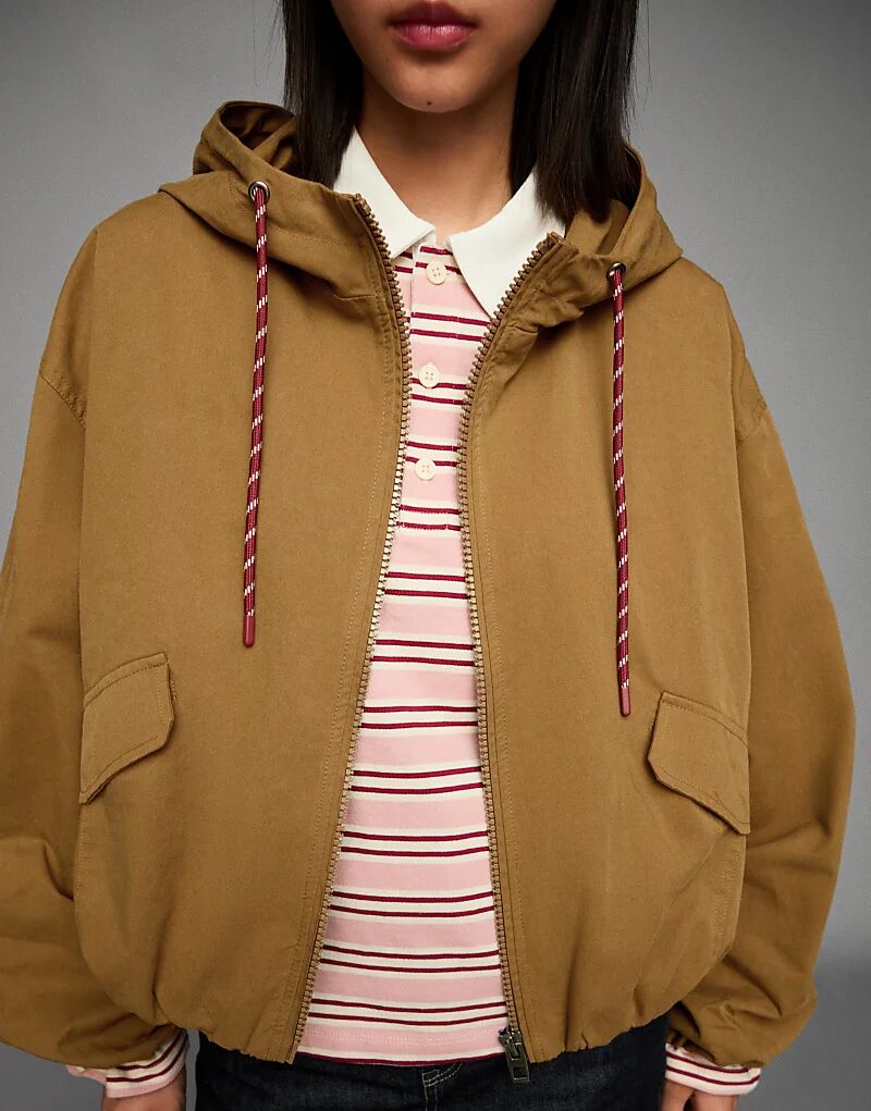 Куртка Bershka с капюшоном цвета верблюжьей шерсти