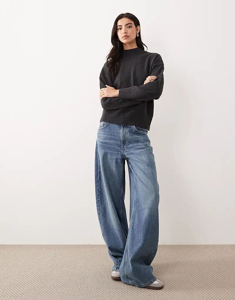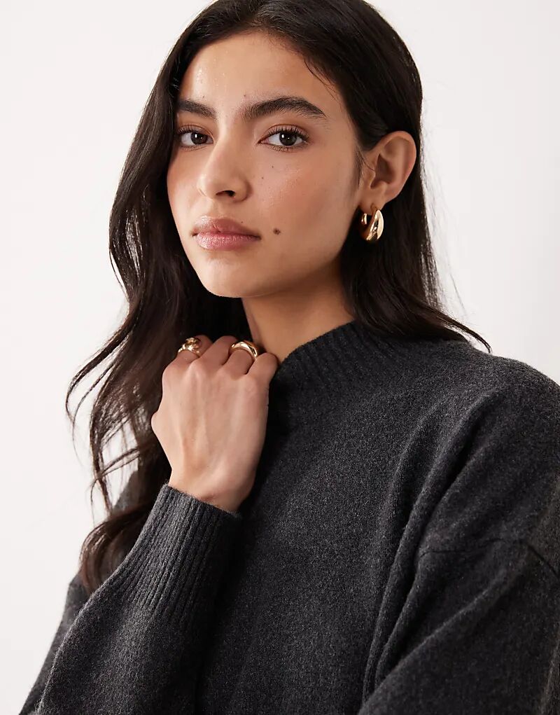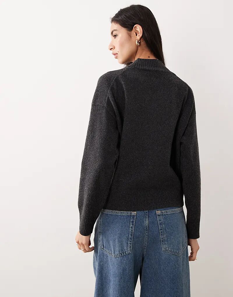 Вязаный джемпер Mango с высоким воротом в антрацитовом цвете