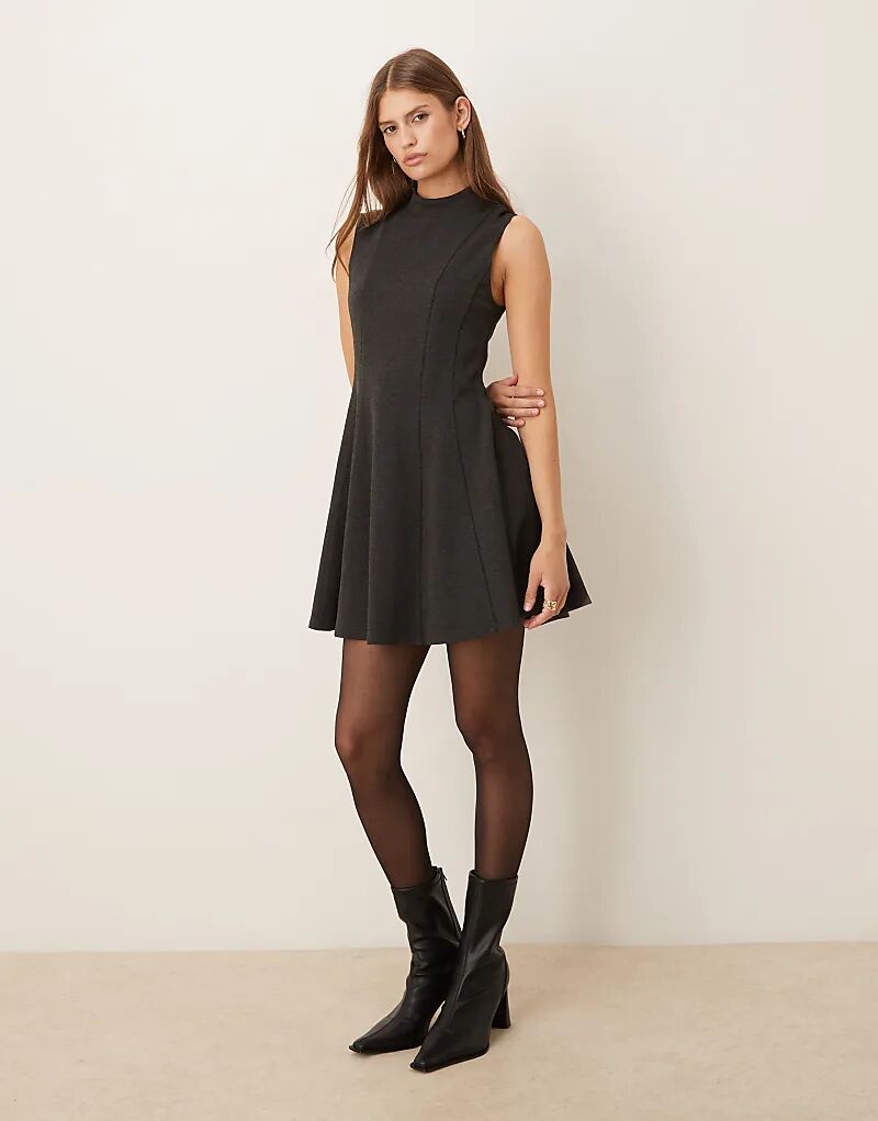 Мини-платье Mango без рукавов со складками, антрацитового цвета