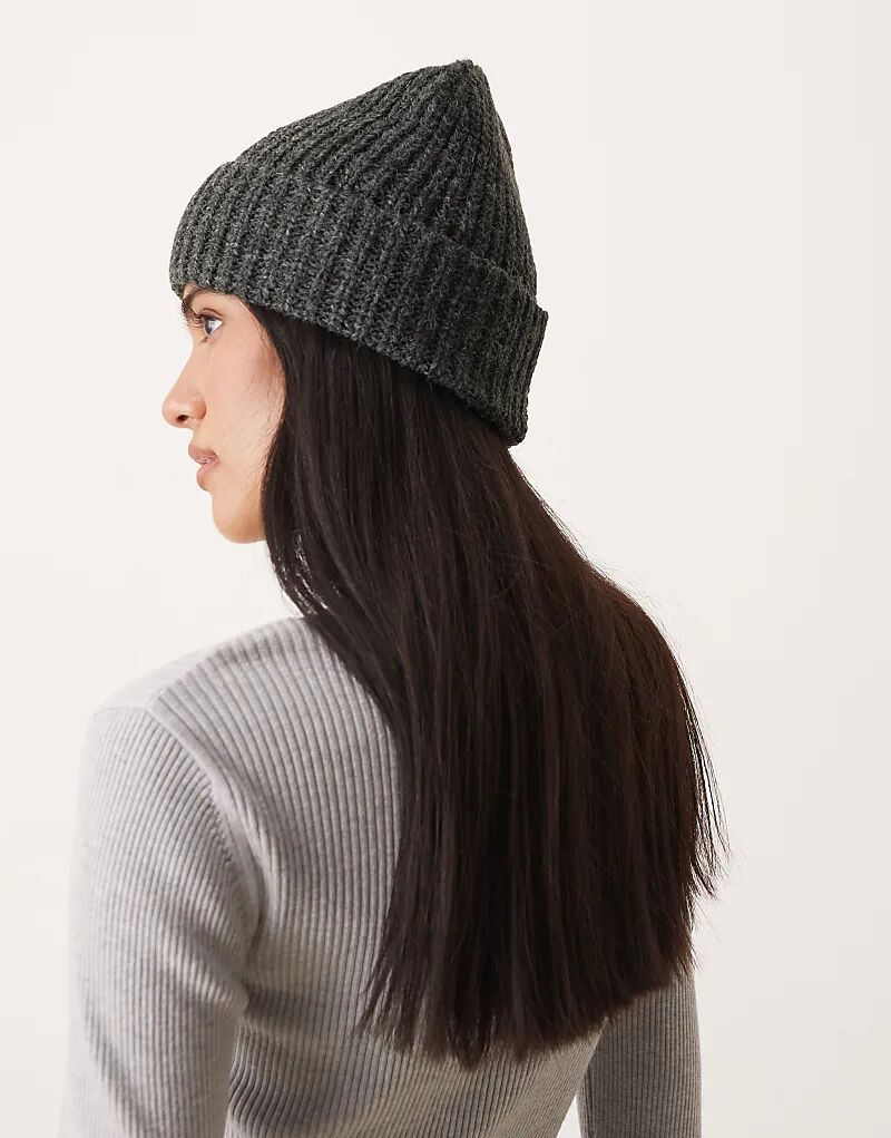 Шапка-бини крупной вязки ASOS DESIGN темно-серого цвета
