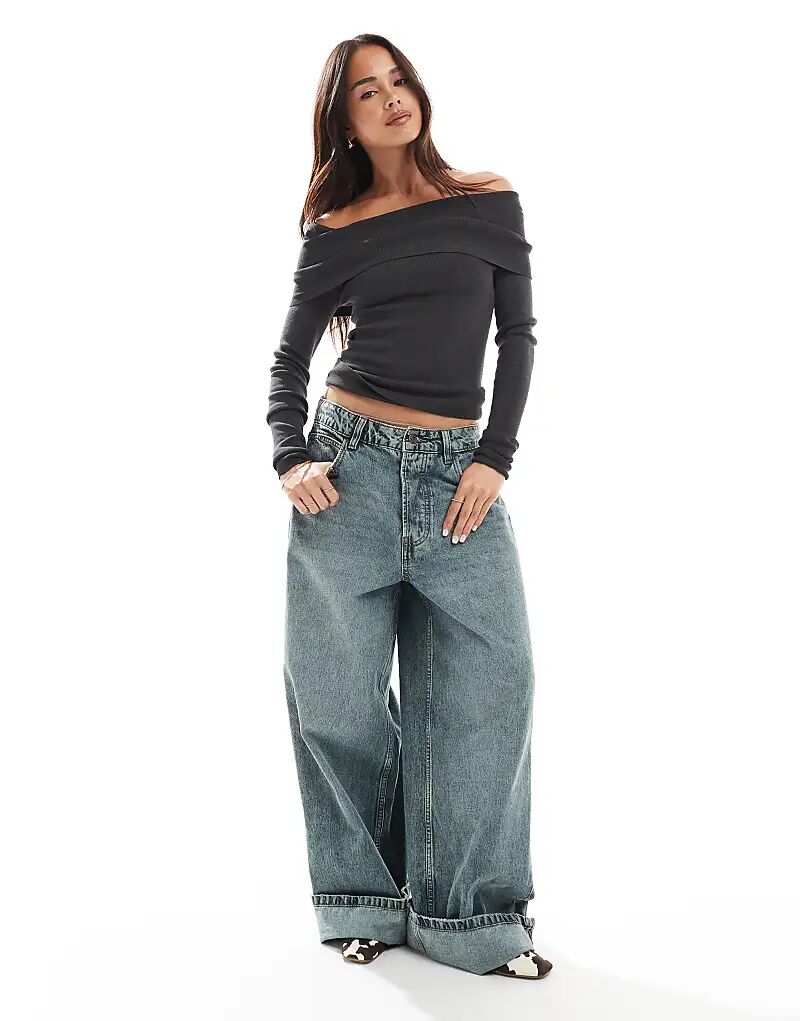Структурированный топ-бардо ASOS DESIGN угольного цвета