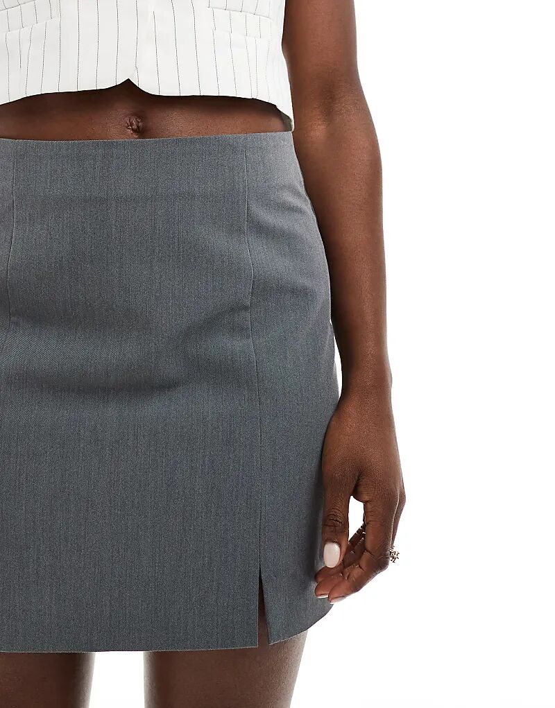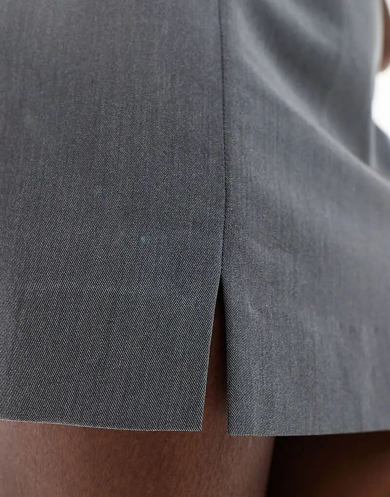 Мини-юбка ASOS DESIGN, приталенная, с разрезами, серого цвета