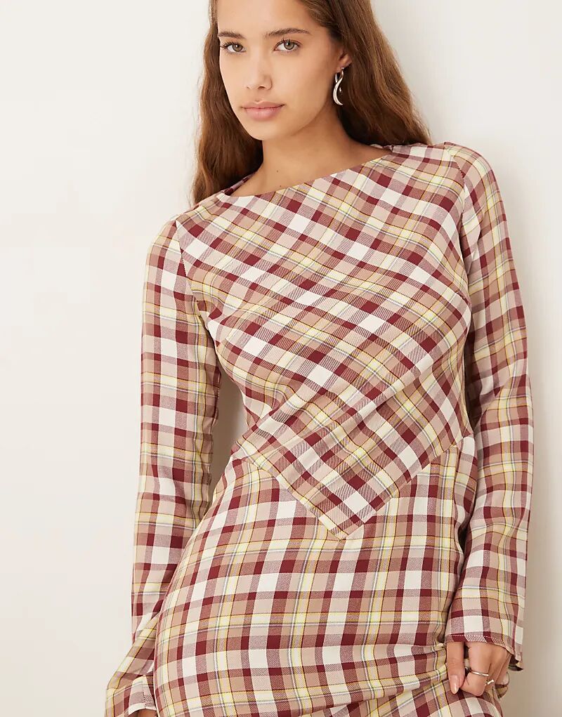 Длинное платье ASOS DESIGN в разноцветную клетку