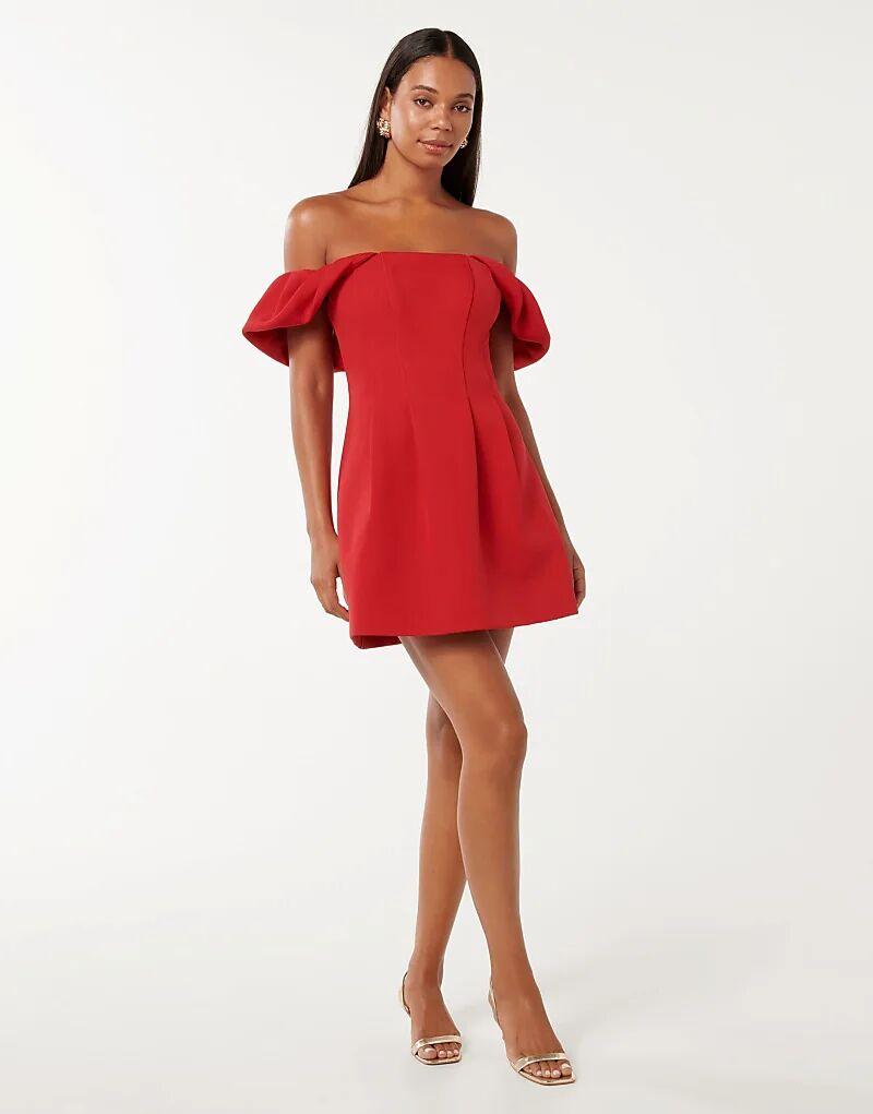 Мини-платье Forever New с вырезом-бардо красного цвета