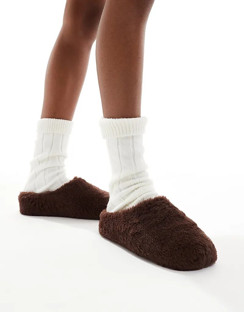 Пушистые тапочки-мюли SEQWL каштанового цвета