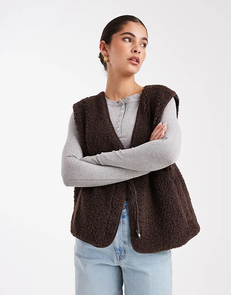 Флисовая безрукавка Object Teddy шоколадного цвета