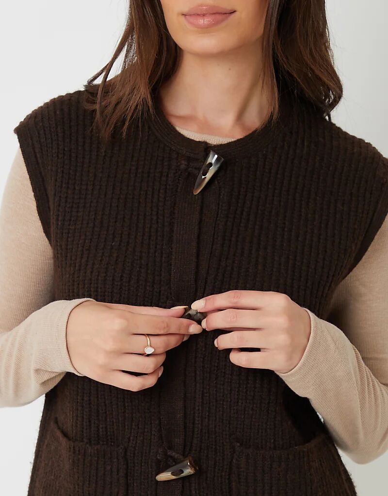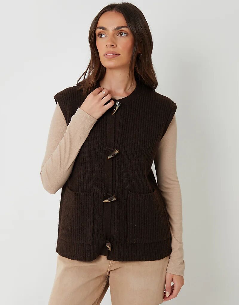 Жилет крупной вязки с отделкой Threadbare Toggle шоколадного цвета