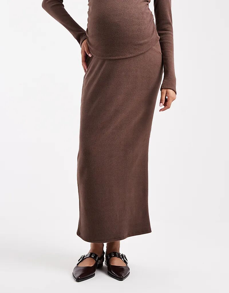 Юбка макси в рубчик от ASOS DESIGN Maternity шоколадного цвета