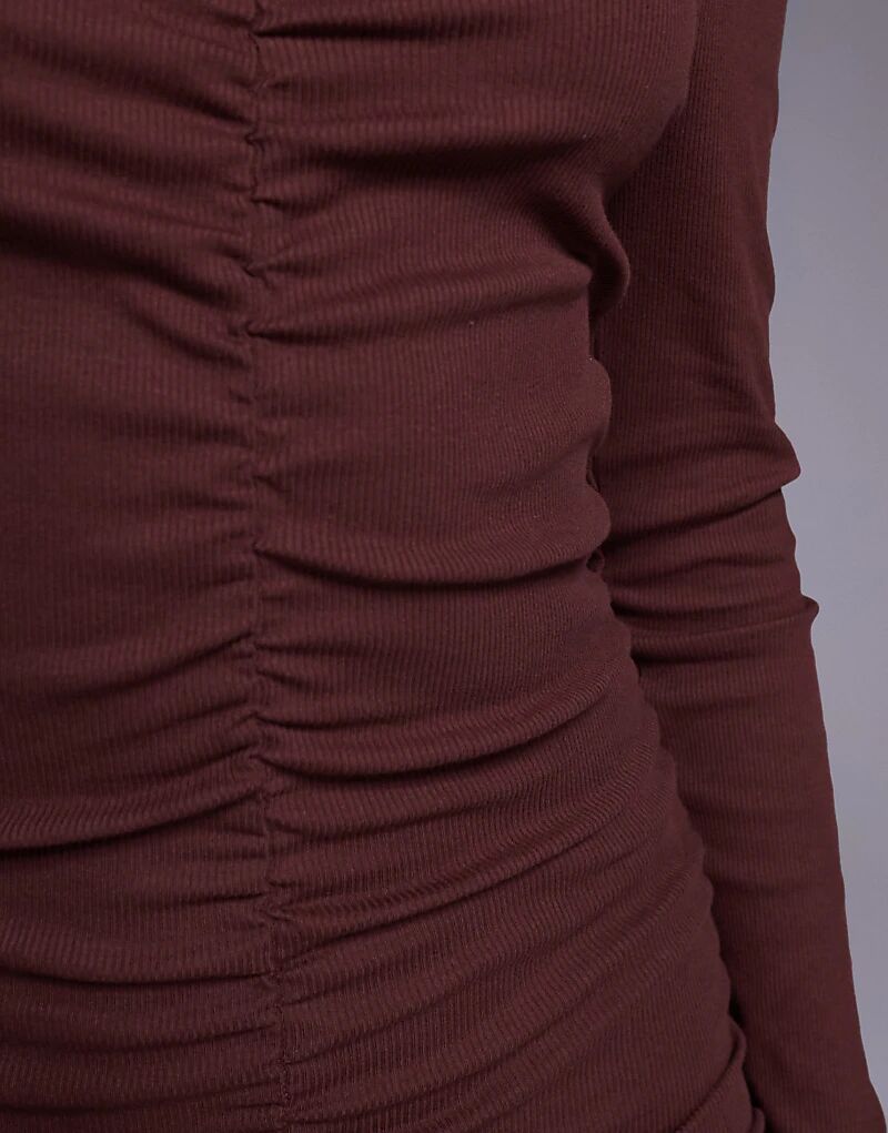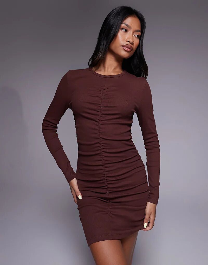 Мини-платье шоколадного цвета со сборками и рубчиком от ASOS DESIGN