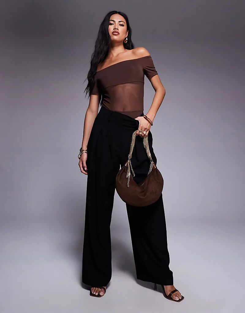 Боди ASOS DESIGN Bardot с сетчатыми вставками шоколадного цвета