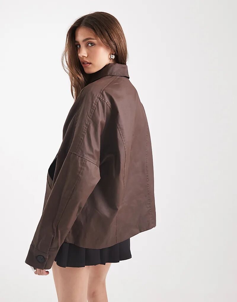 Куртка Харрингтон ASOS DESIGN шоколадного цвета из вощеной ткани 8 949₽