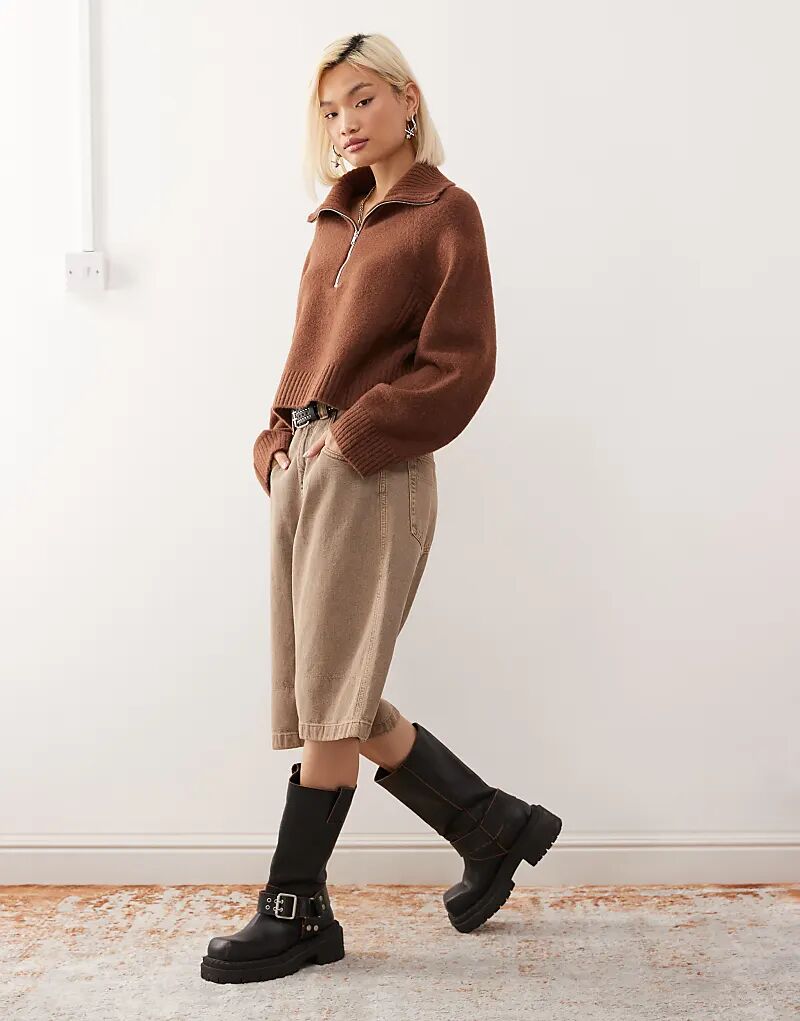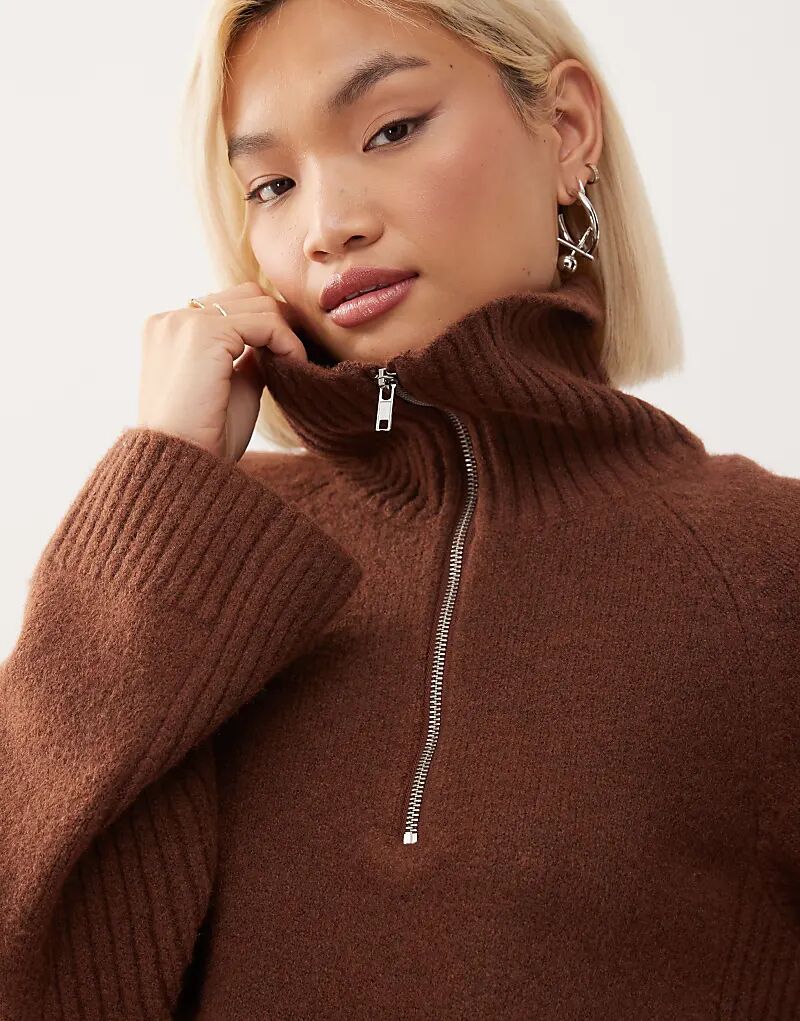 Джемпер Monki на молнии шоколадно-коричневого цвета