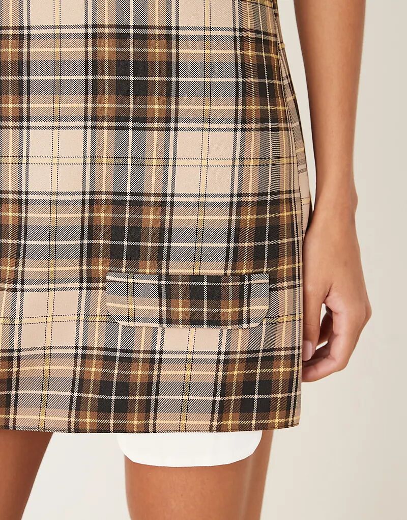 Платье-мини с круглым вырезом ASOS DESIGN в шоколадную клетку