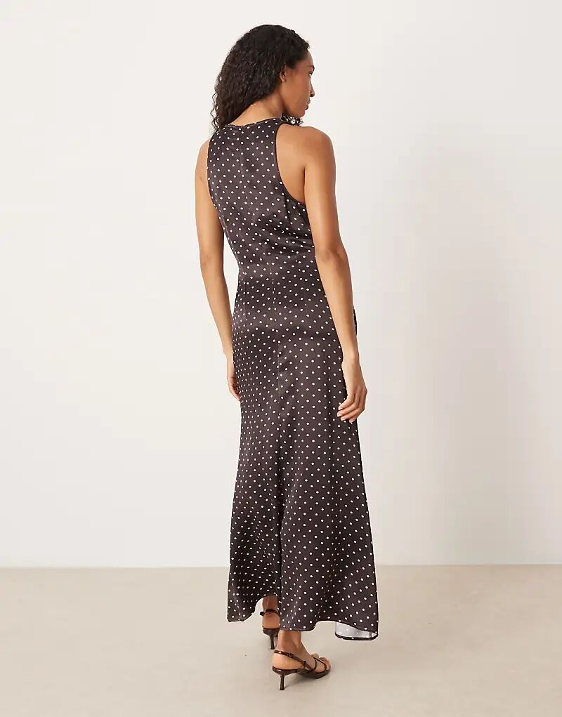 Платье макси из атласа ASOS DESIGN в шоколадный горошек