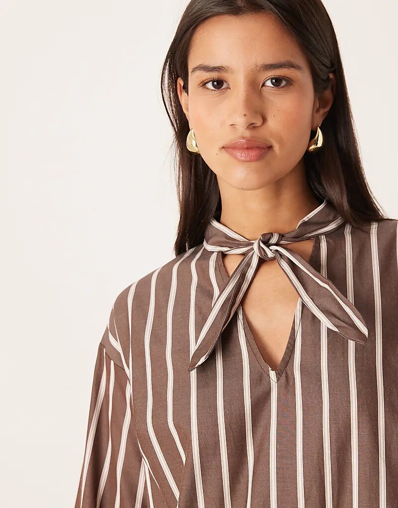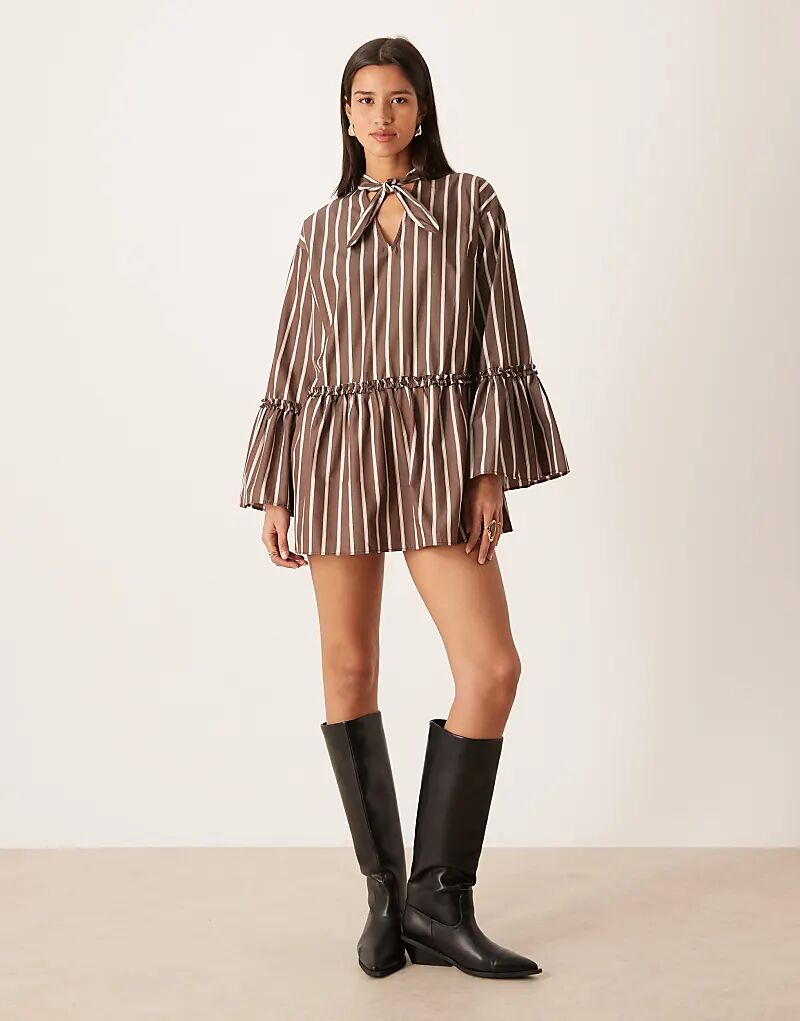 Платье мини ASOS DESIGN с завязкой на шее в шоколадную полоску