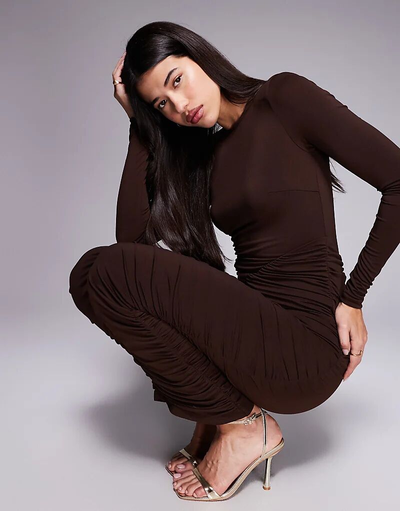 Платье макси-костюм Ruched & Ready с рюшами, шоколадного цвета