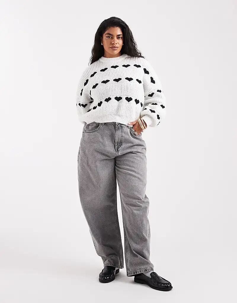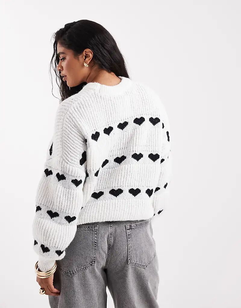 Вязаный джемпер Pieces Curve с узором в виде сердца, монохром
