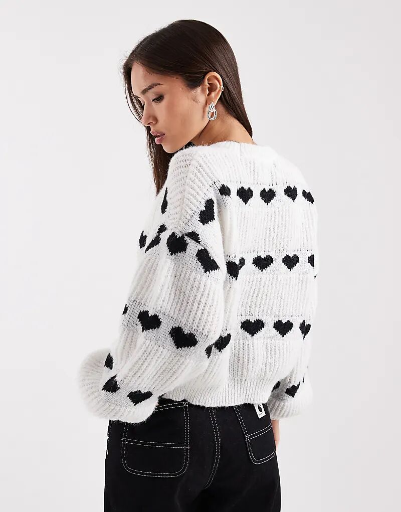 Вязаный джемпер с узором в виде сердца в монохромном исполнении