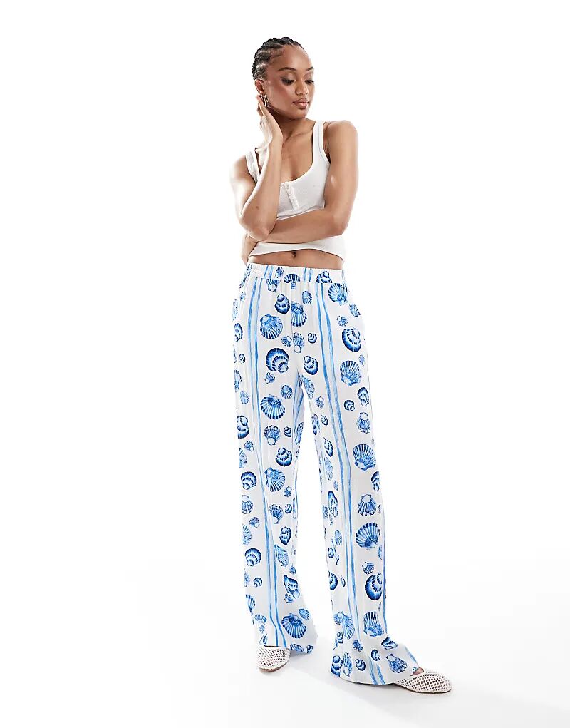 Широкие брюки Vero Moda Tall с синим принтом ракушек