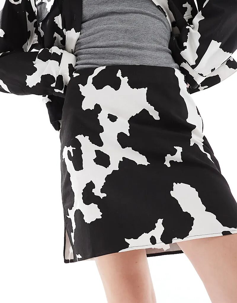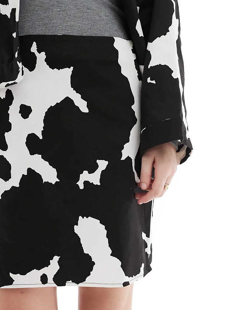 Мини-юбка из эластичного денима Object с принтом коровы черного цвета