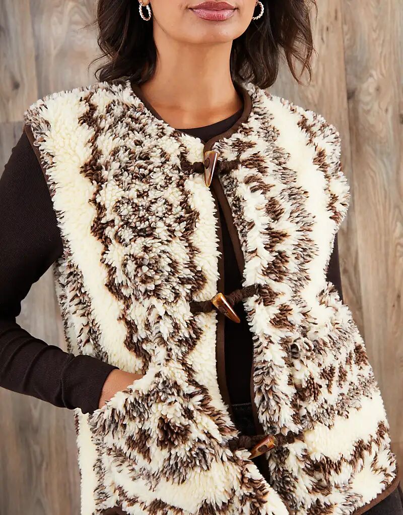 Жилет Threadbare Printed из флиса Borg кремового цвета