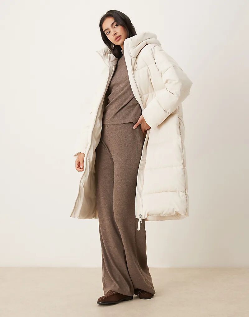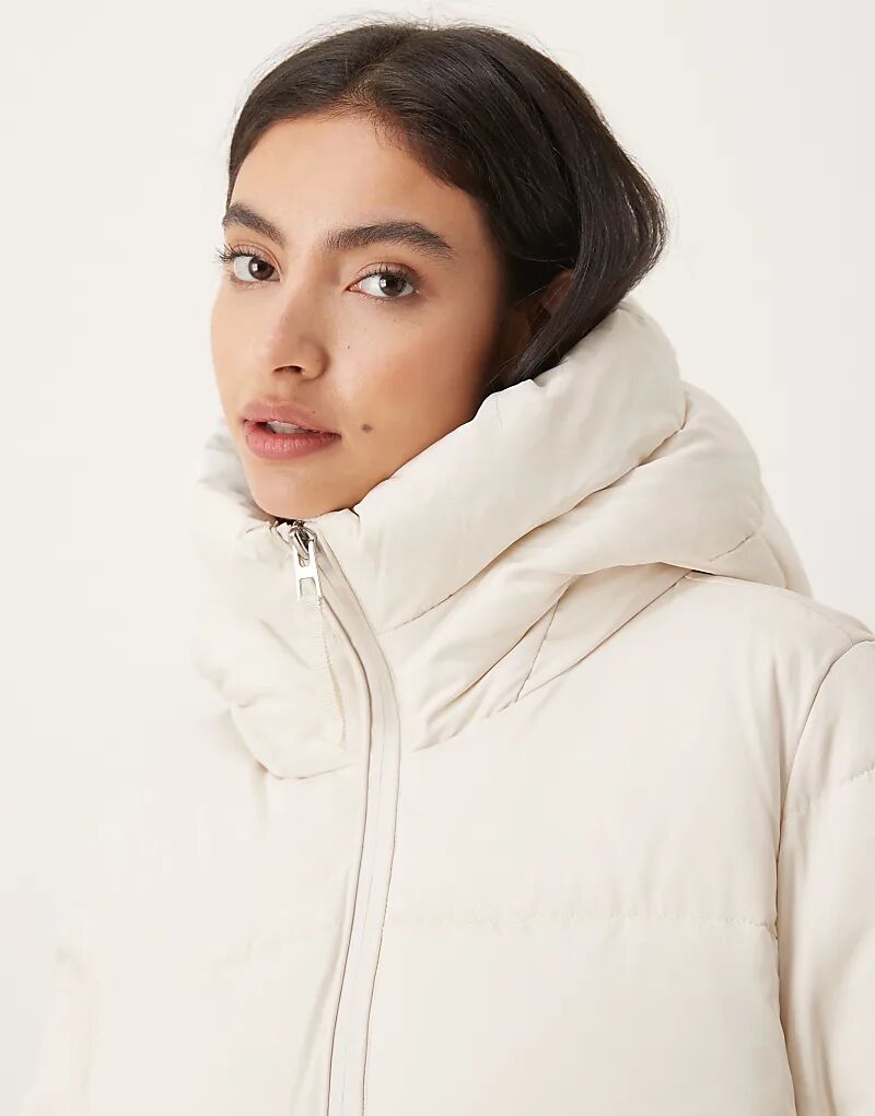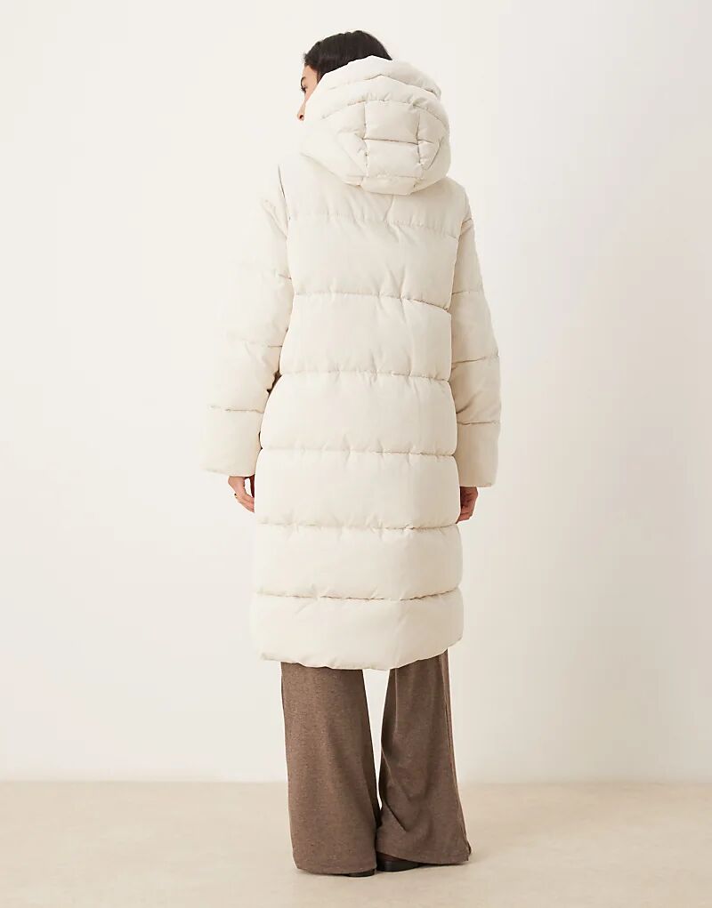 Удлиненная стеганая куртка Mango с капюшоном кремового цвета