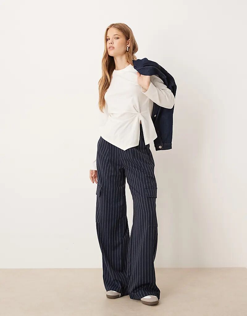 Кремовый лонгслив с длинными рукавами и узлом ASOS DESIGN