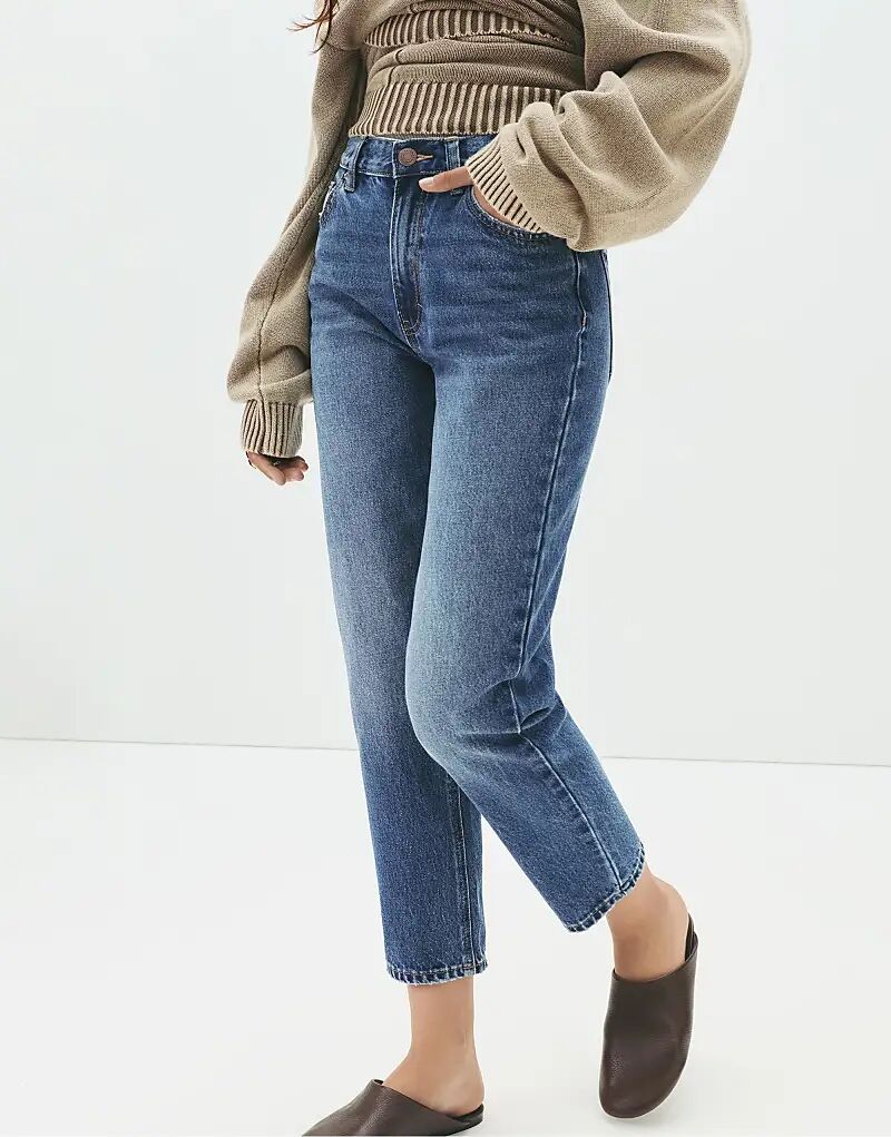 Джинсы Mom с высокой талией Pull&Bear темно-синего цвета