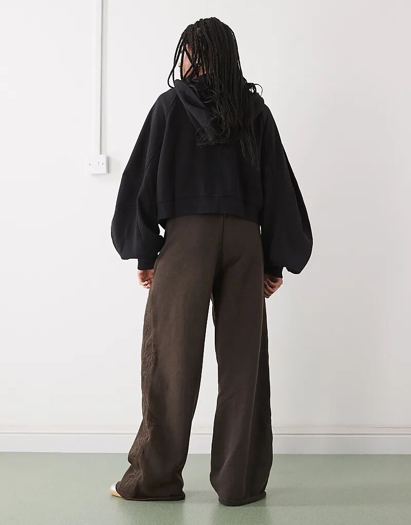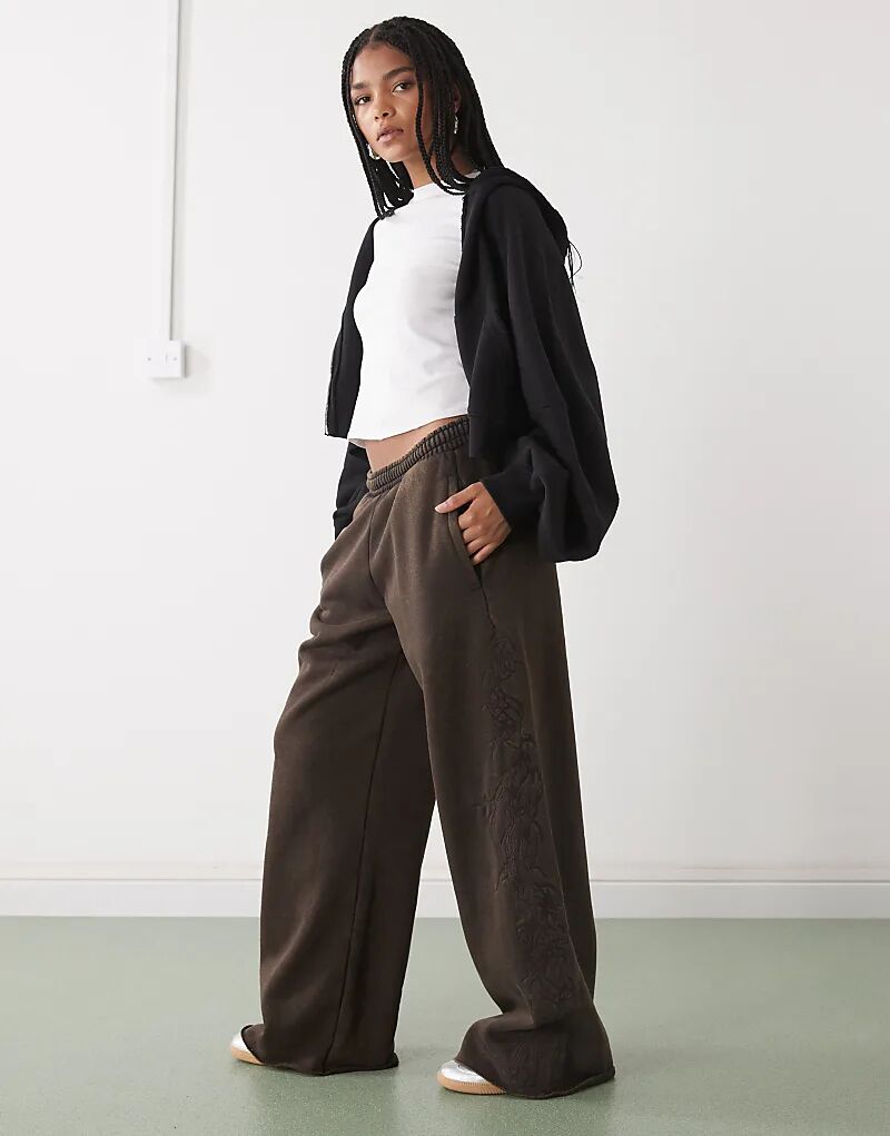 Свободные вышитые брюки-джоггеры Weekday темно-коричневого цвета