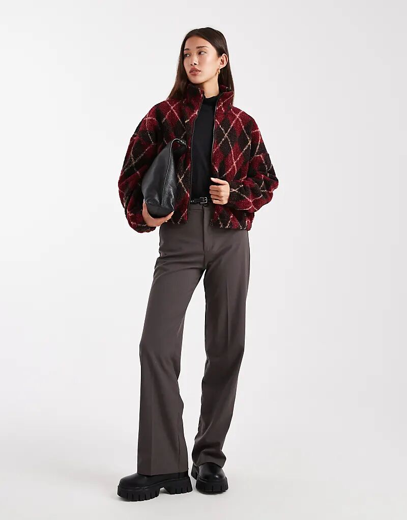 ONLY плюшевый флис на молнии в бордовую клетку 7 161₽
