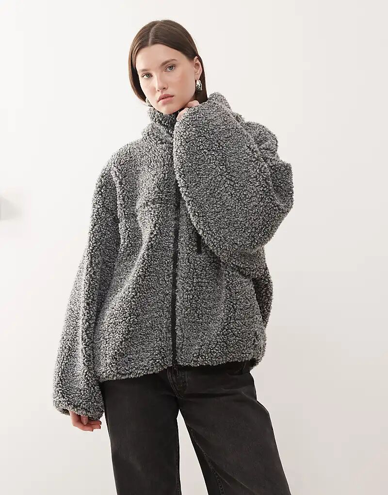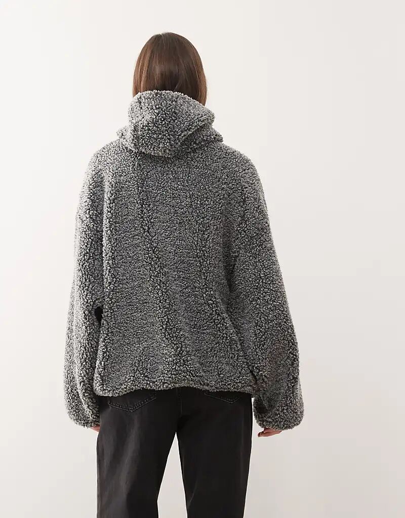 Свободный флисовый джемпер Weekday на молнии с капюшоном, темно-серый