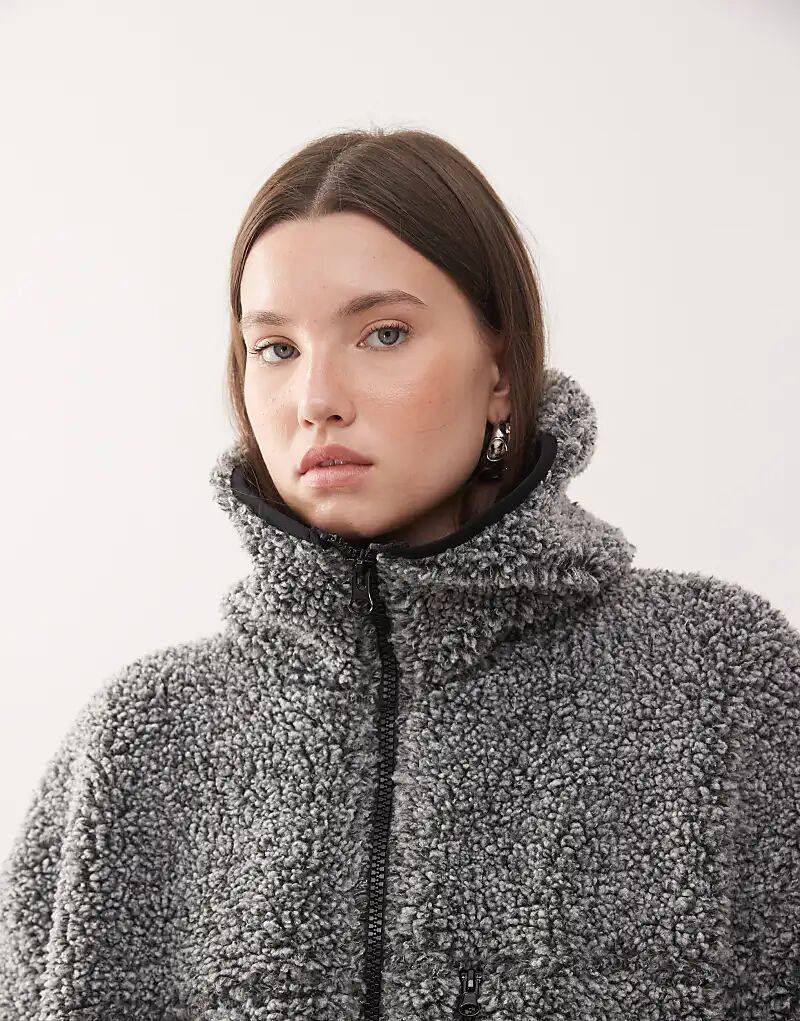 Свободный флисовый джемпер Weekday на молнии с капюшоном, темно-серый 10 359₽
