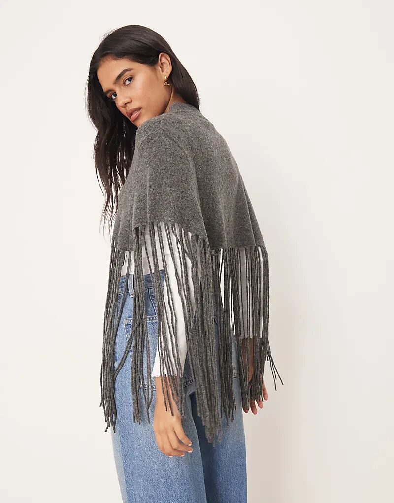 Вязаное пончо JDY с бахромой темно-серого цвета