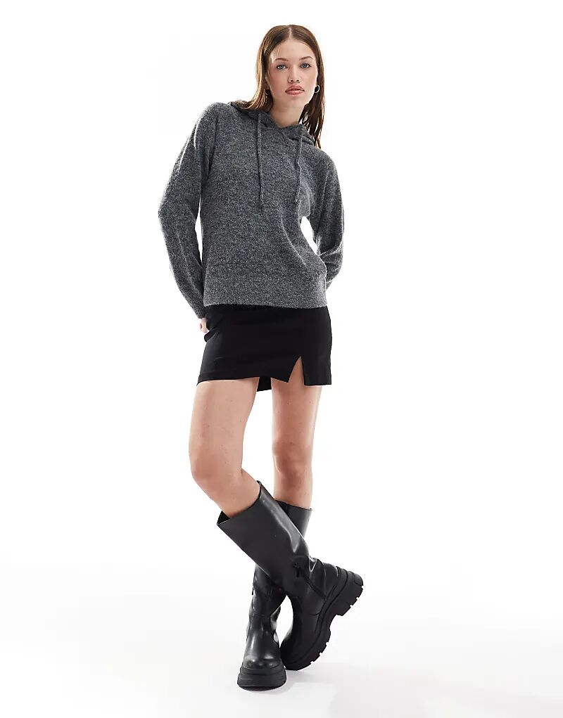 Вязаный пушистый джемпер с капюшоном JJXX серого цвета