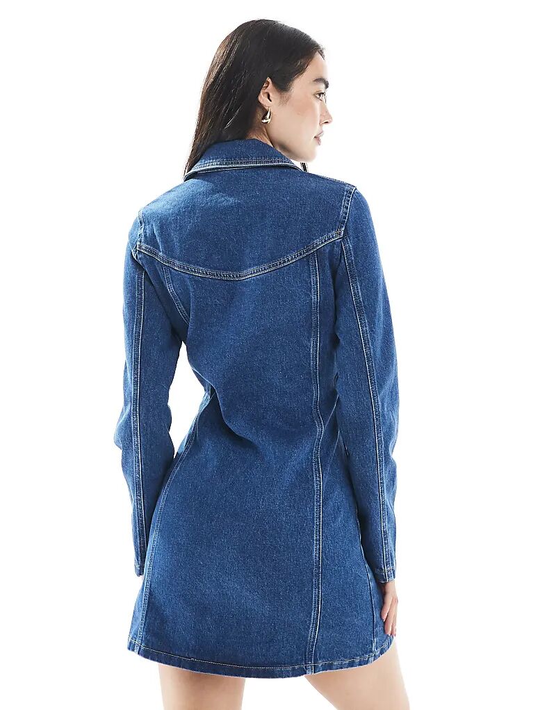 Джинсовое мини-платье-рубашка ASOS DESIGN со швом и карманами, средне-синего цвета