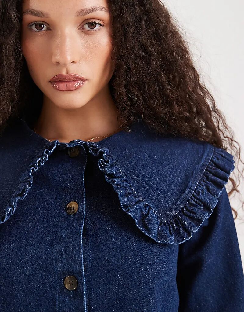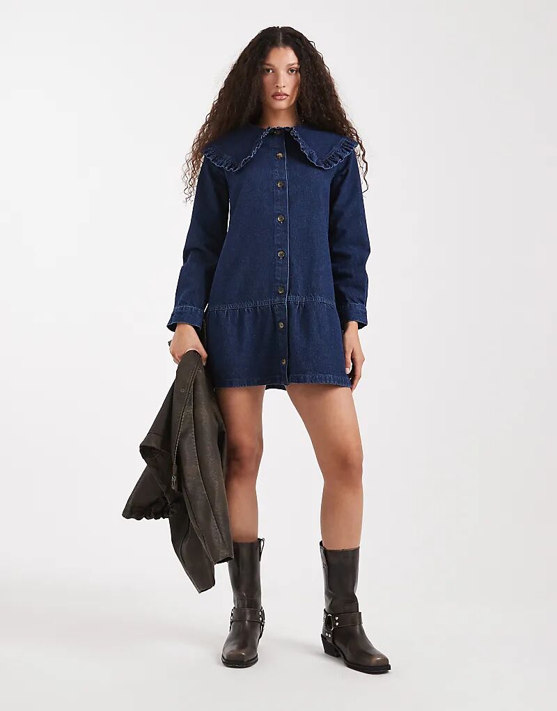 Джинсовое мини-платье ASOS DESIGN с воротником и баской по низу, темно-синего цвета