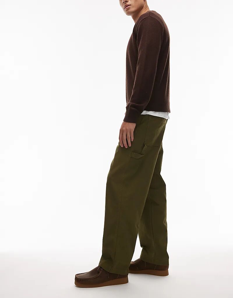 Плотницкие брюки свободного кроя Timberland с карманами из плотной ткани оливкового цвета