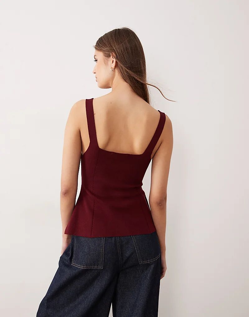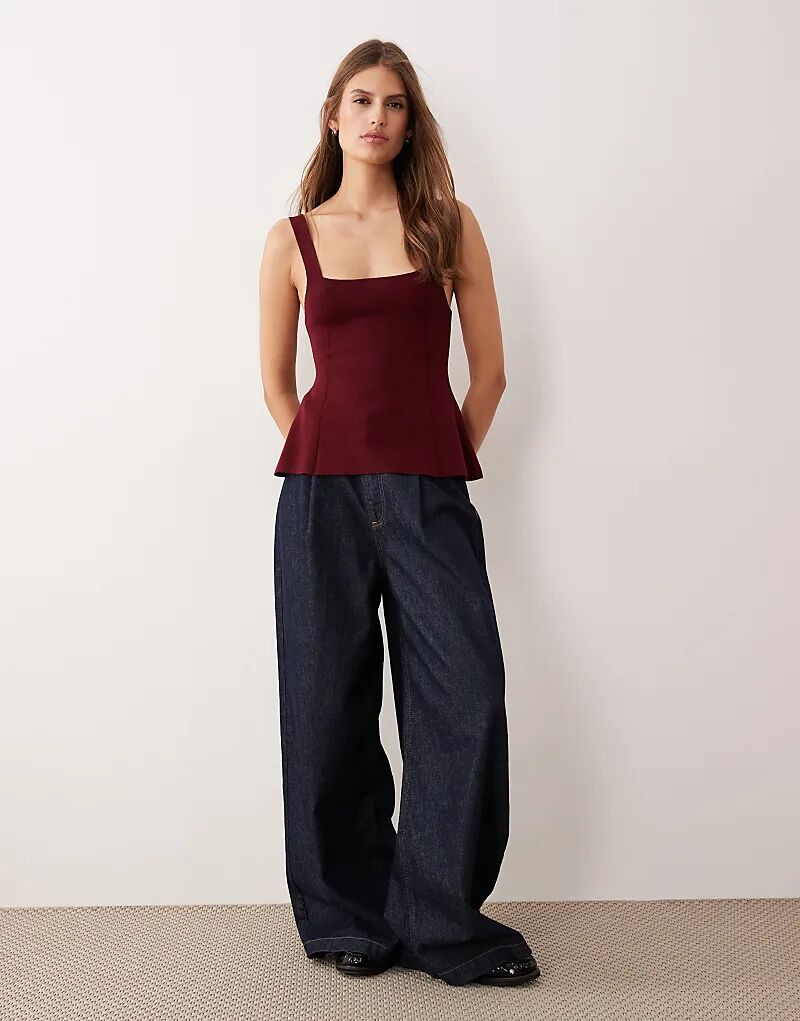 Топ Mango с квадратным вырезом и баской, темно-красный