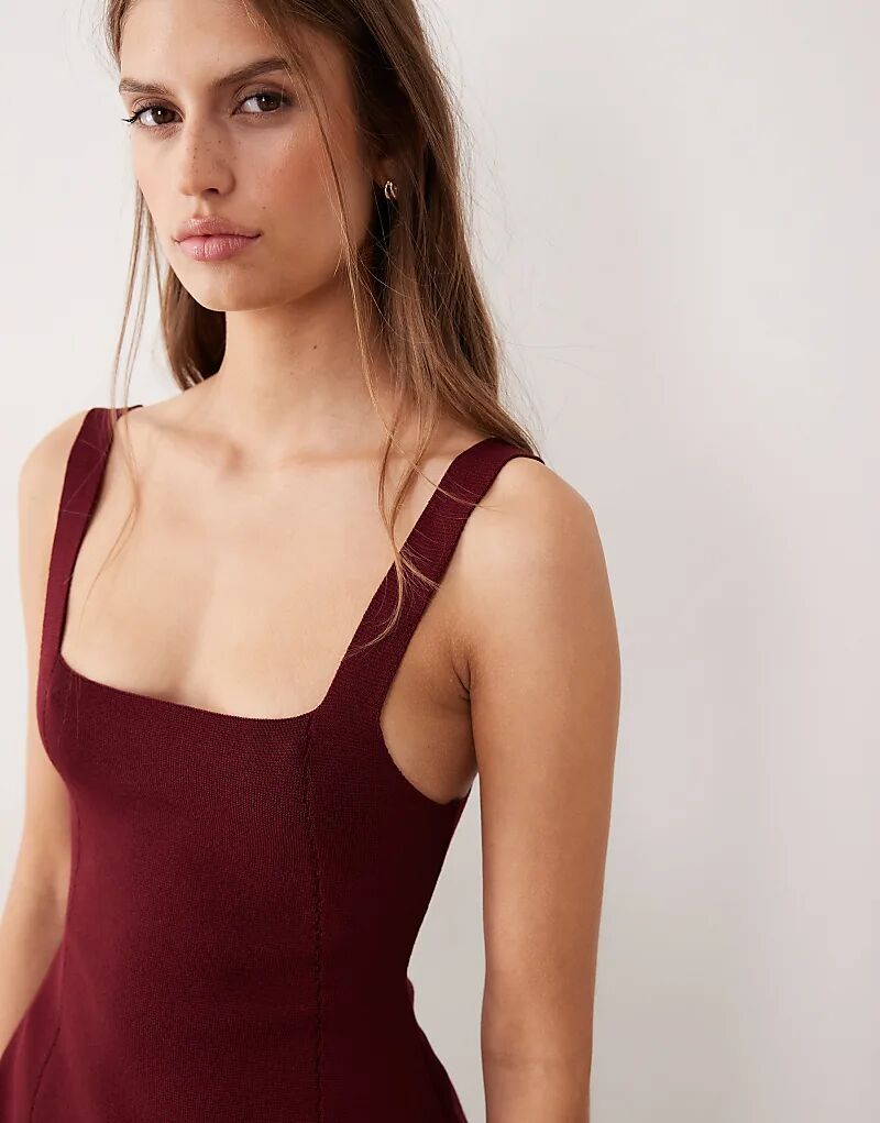 Топ Mango с квадратным вырезом и баской, темно-красный 4 950₽