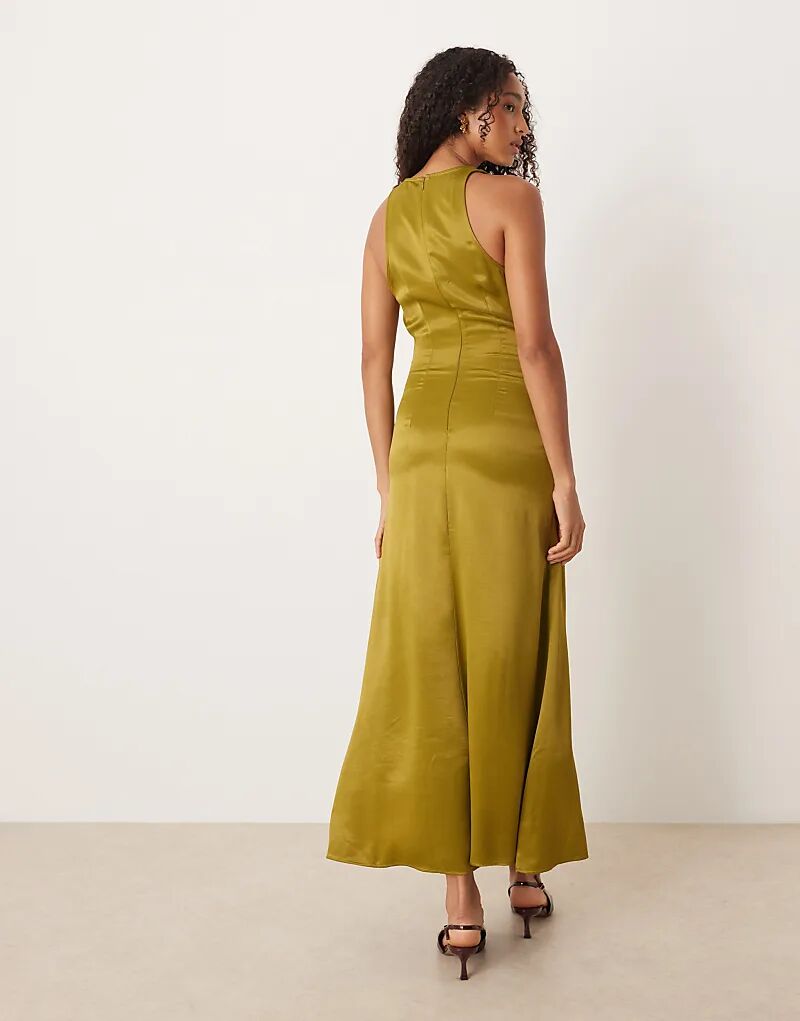 Платье макси из атласа ASOS DESIGN в оливковом цвете