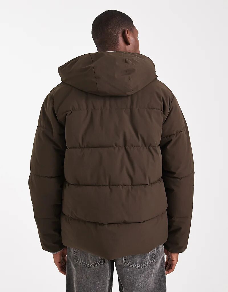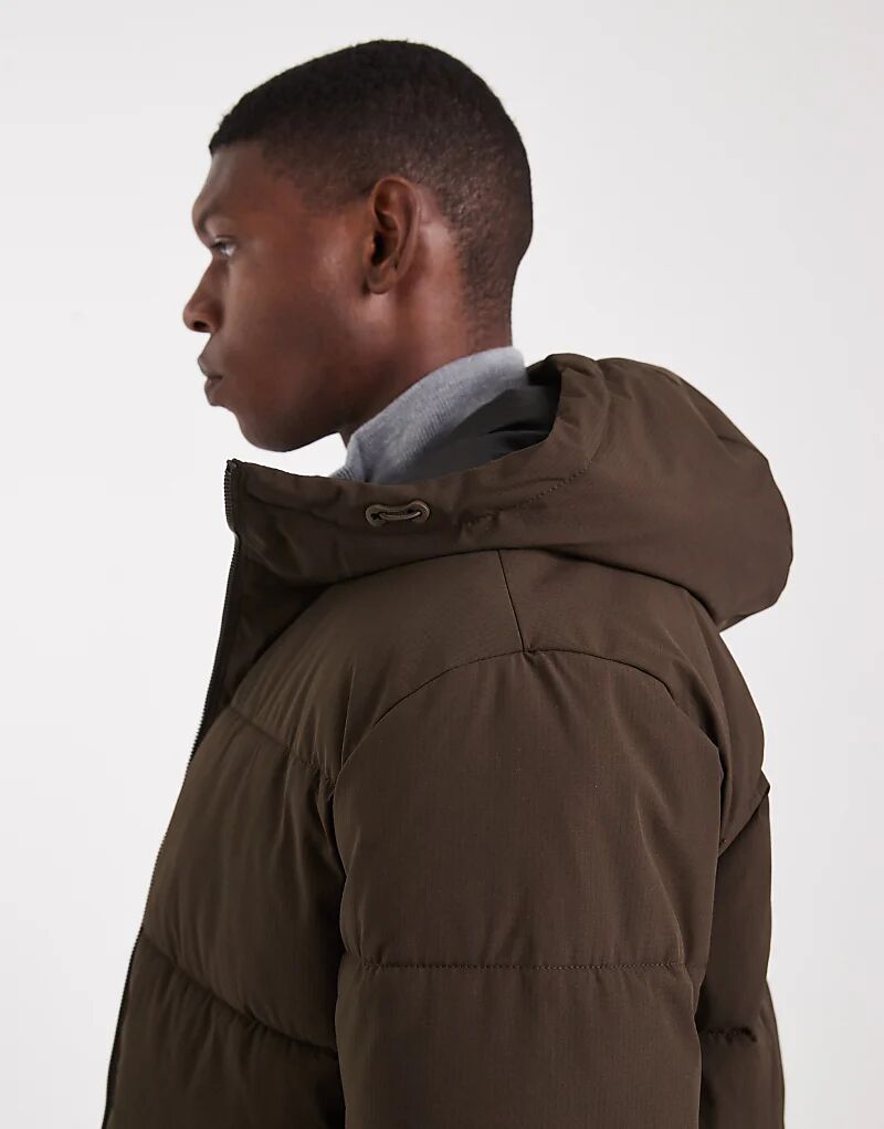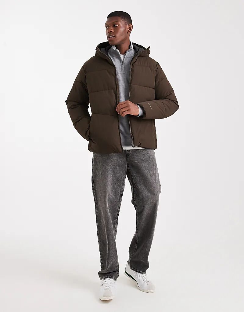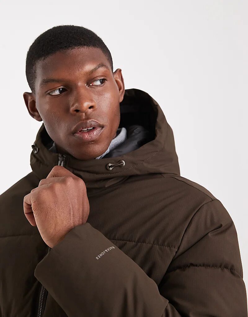 Куртка-пуховик Jack & Jones с капюшоном коричневого цвета