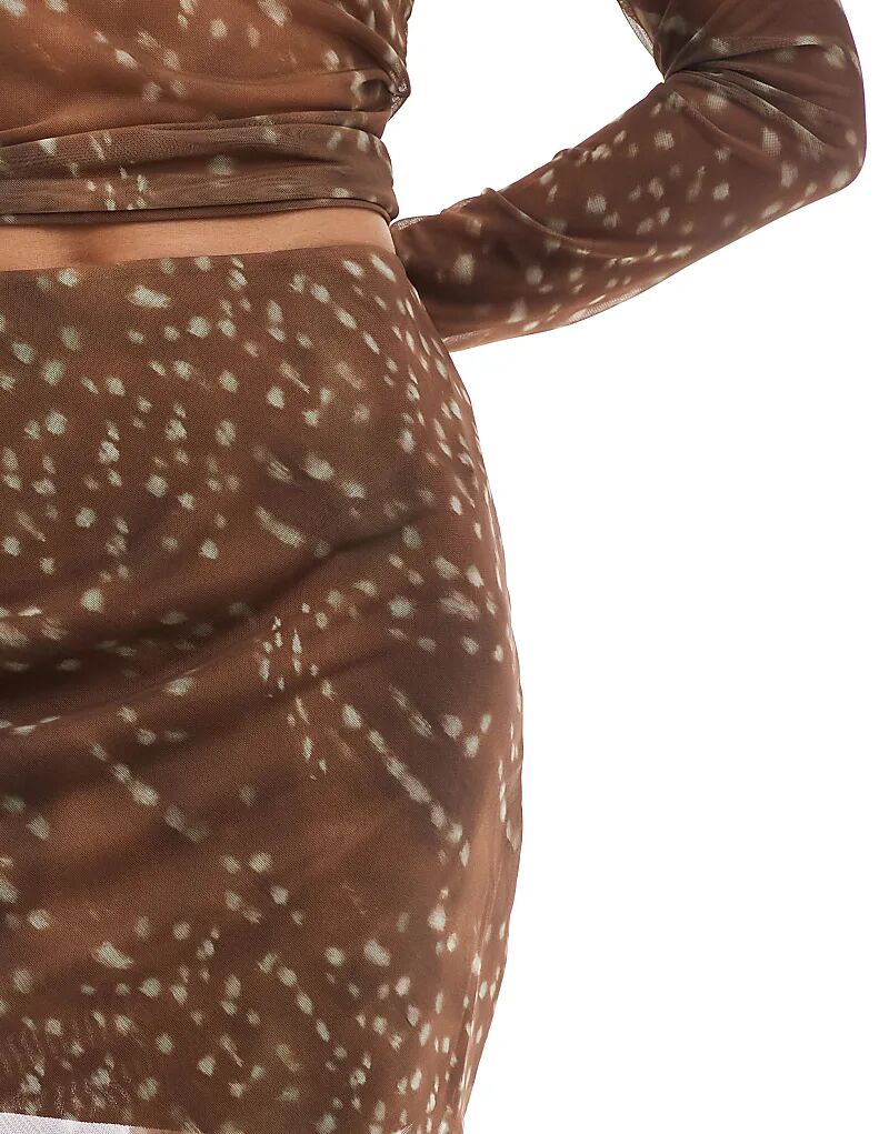 Мини-юбка с принтом «Бэмби» от Pieces, коричневый цвет
