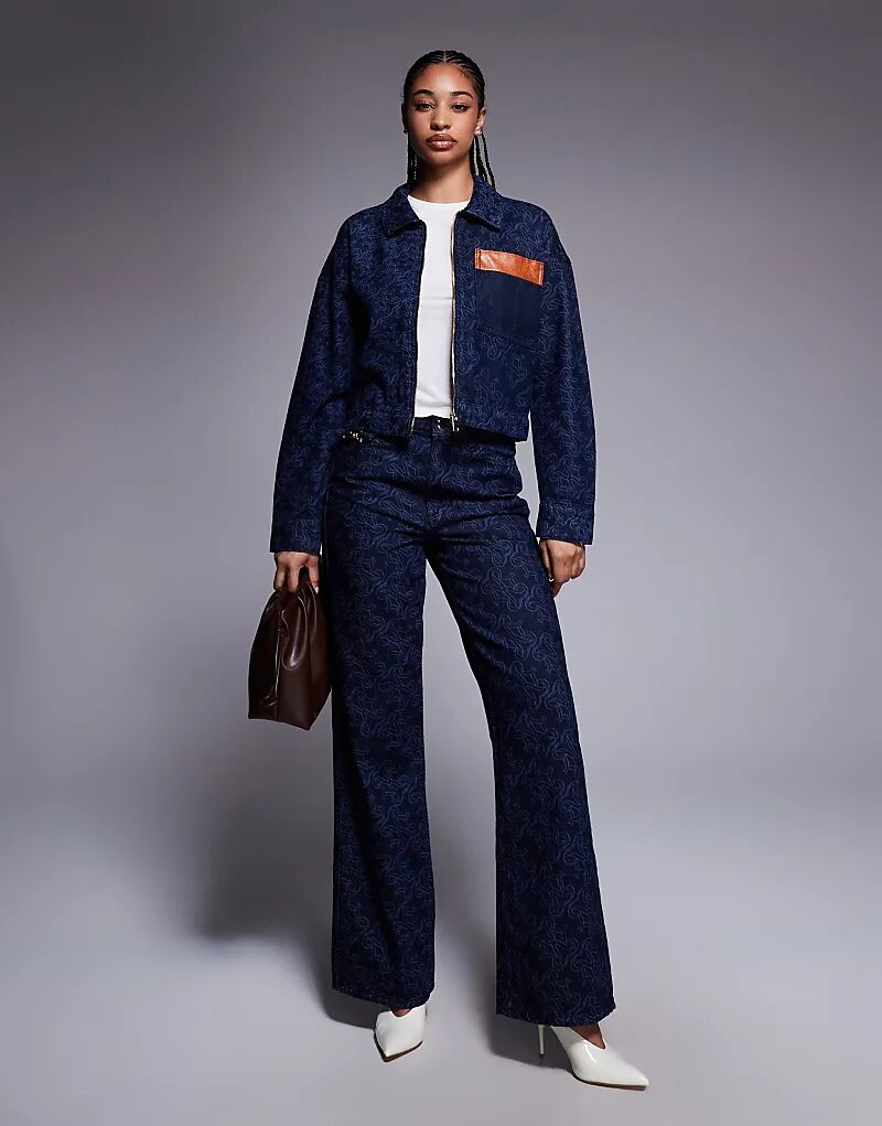 Джинсовая куртка с монограммой River Island из темного денима