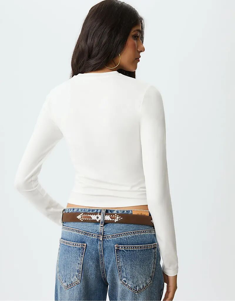 Футболка Stradivarius Basic с круглым вырезом цвета экрю