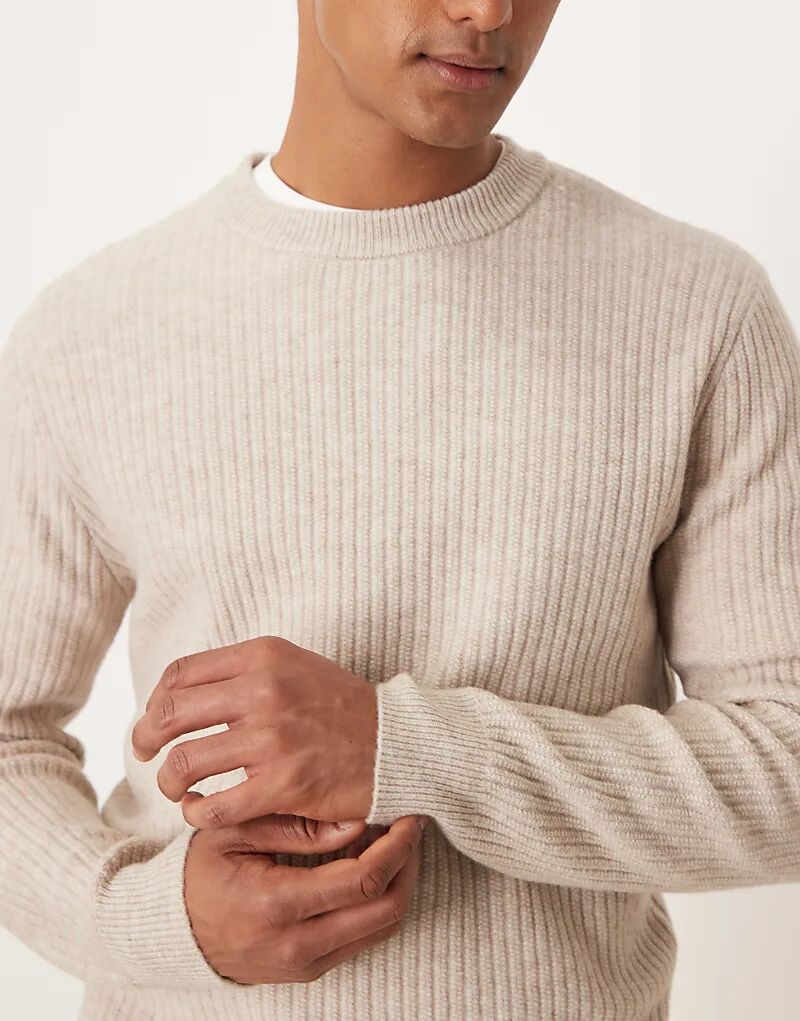 Классический свободный джемпер Mango в рубчик цвета экрю