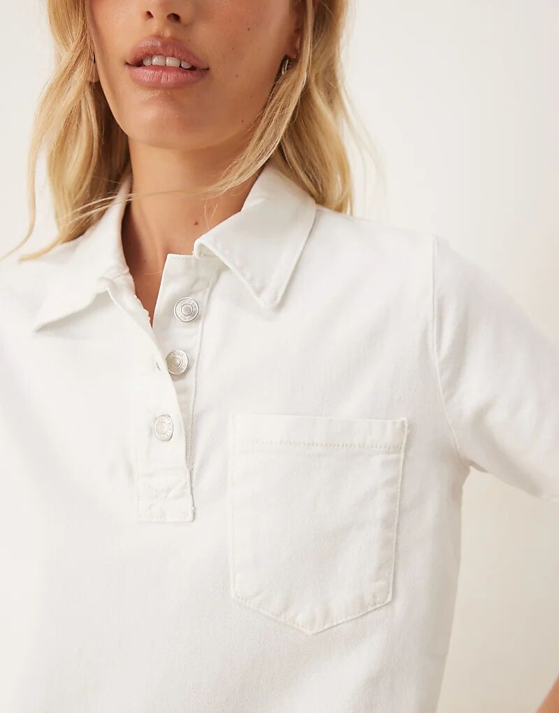Платье-поло из денима ASOS DESIGN цвета экрю