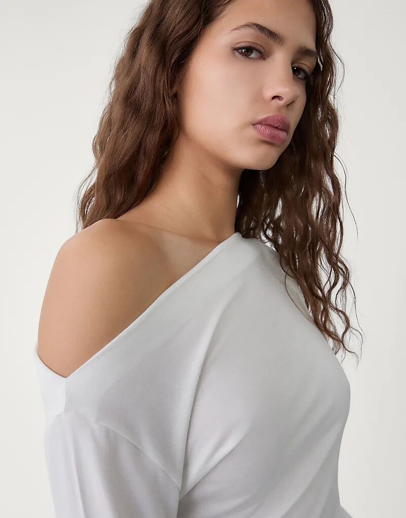 Топ Stradivarius с асимметричным вырезом в цвете экрю
