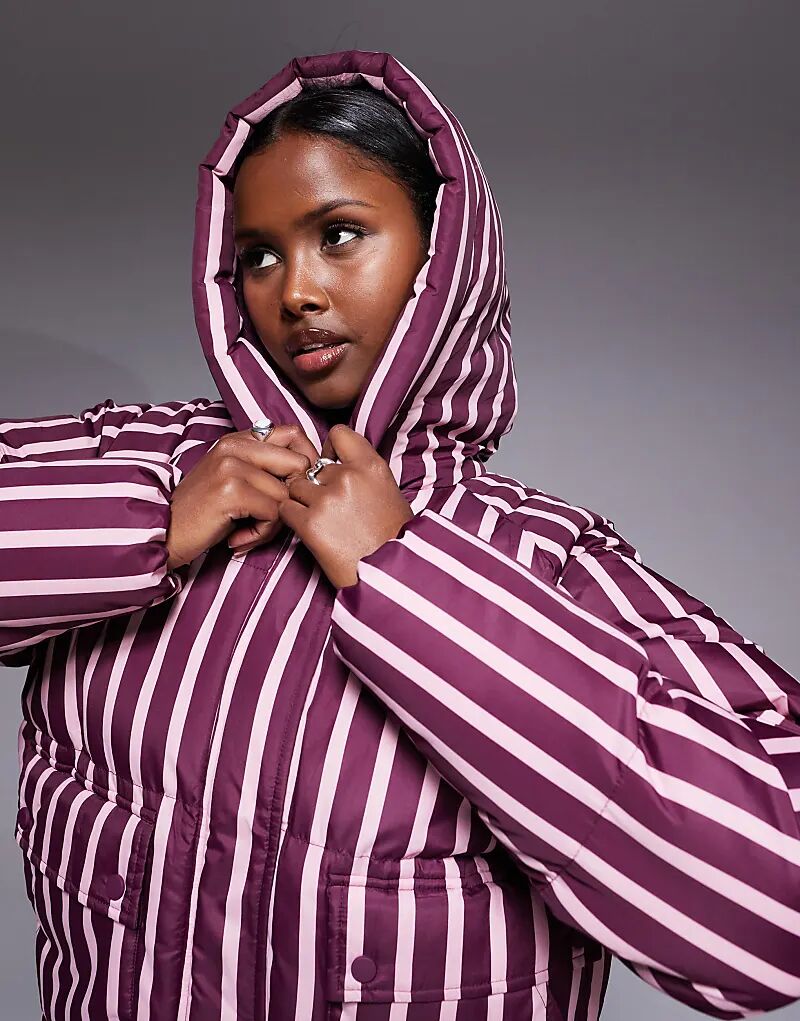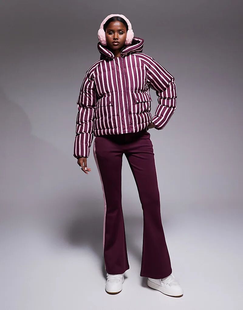 Пуховик Threadbare Ski Stripe с капюшоном бордового и розового цветов 9 899₽
